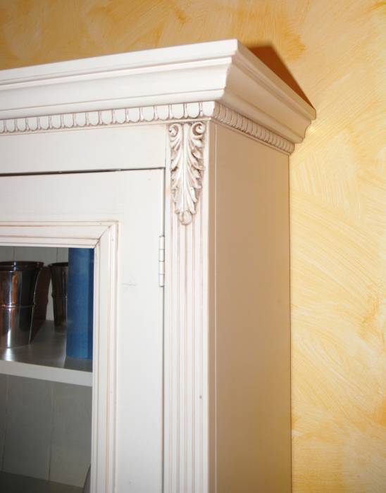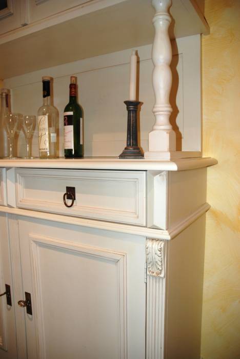 Nostalgisches Buffet aus massivem Fichtenholz, cremeweiß lackiert im "Antik-Look".